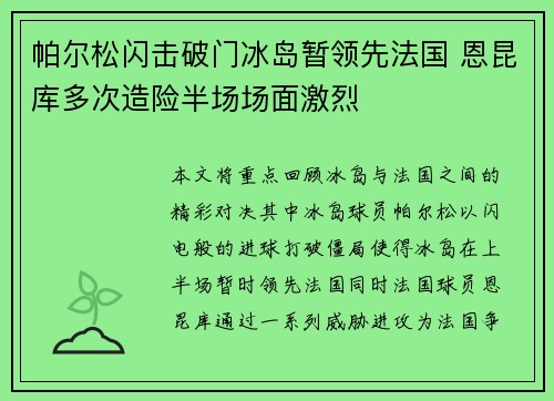 本场申花客战江原的比赛因排兵布阵上的特殊性而格外引人关注。球队在这场硬仗中,仅以特谢拉一名外援首发,其余位置则更多依靠国内球员,展现了教练组的战术取舍和对球队整体性的信任。同时,吴启鹏和鲍亚雄这两名本土球员一同登场,更为比赛增添了新的看点。整篇文章将围绕这场比赛的背景与意义、战术布置与人员选择、关键...